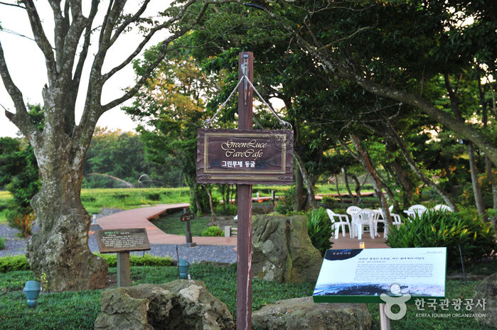 제주도 제주시 조천읍 선흘리 일대 6만 평 대지에 자리잡은 경덕원(炅德院)은 국내 최고 수준의 친환경 녹차를 생산하는 다원이다. 제주도는 연평균 온도가 섭씨 16도를 유지해야 하고, 뿌리가 쉽게 썩어 물이 잘 빠지는 녹차 재배의 최적의 조건을 갖추고 있다.에버그린루체 야외정원은 화산이 폭발하면서 흘러내린 용암에 의해 생성된 조그만 동굴들을 활용한 곳이다. 동굴연못과 동굴다리 그리고 제주 자생수와 야생화 등이 어우러져 있다. 이브홀은 동굴 천정이 뚫린 부분에 있다. 사방에 동공들이 뚫려 있는데 가장 긴 것은 30여 미터까지 된다. 여기에는 박쥐도 서식하고 있어 운이 좋으면 직접 볼 수도 있다. 이브홀은 터널같은 동굴을 통과하여야 들어갈 수 있다.경덕원 정상부(그린루체)와 입구(이브홀)에 각각 자리한 두 곳의 동굴 카페에서는 천연 녹차 발효빵, 녹차 쿠키, 녹차 머핀, 녹차라떼, 천연 녹차 발효즙 카테킹 등이 판매되고 있다.