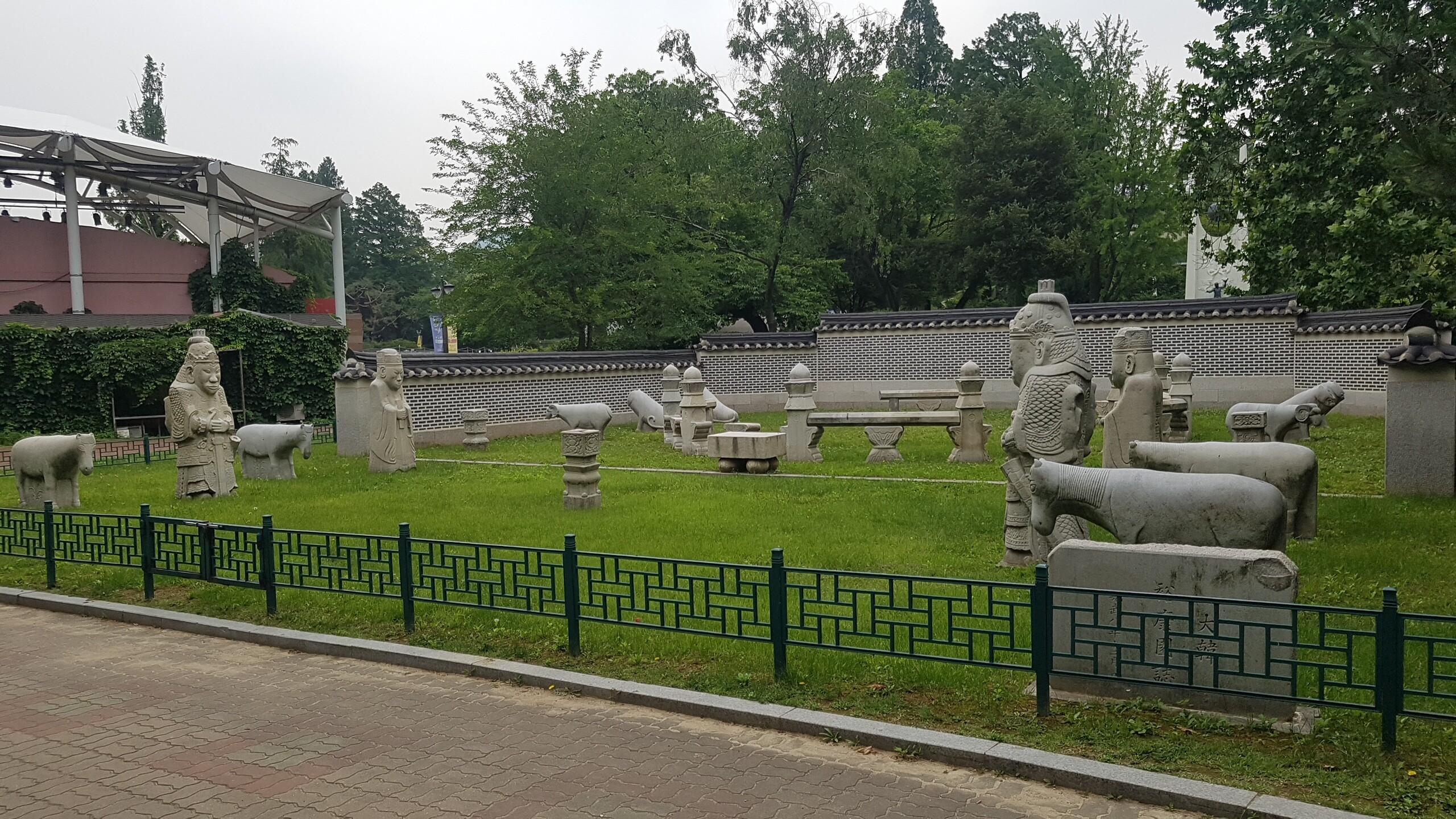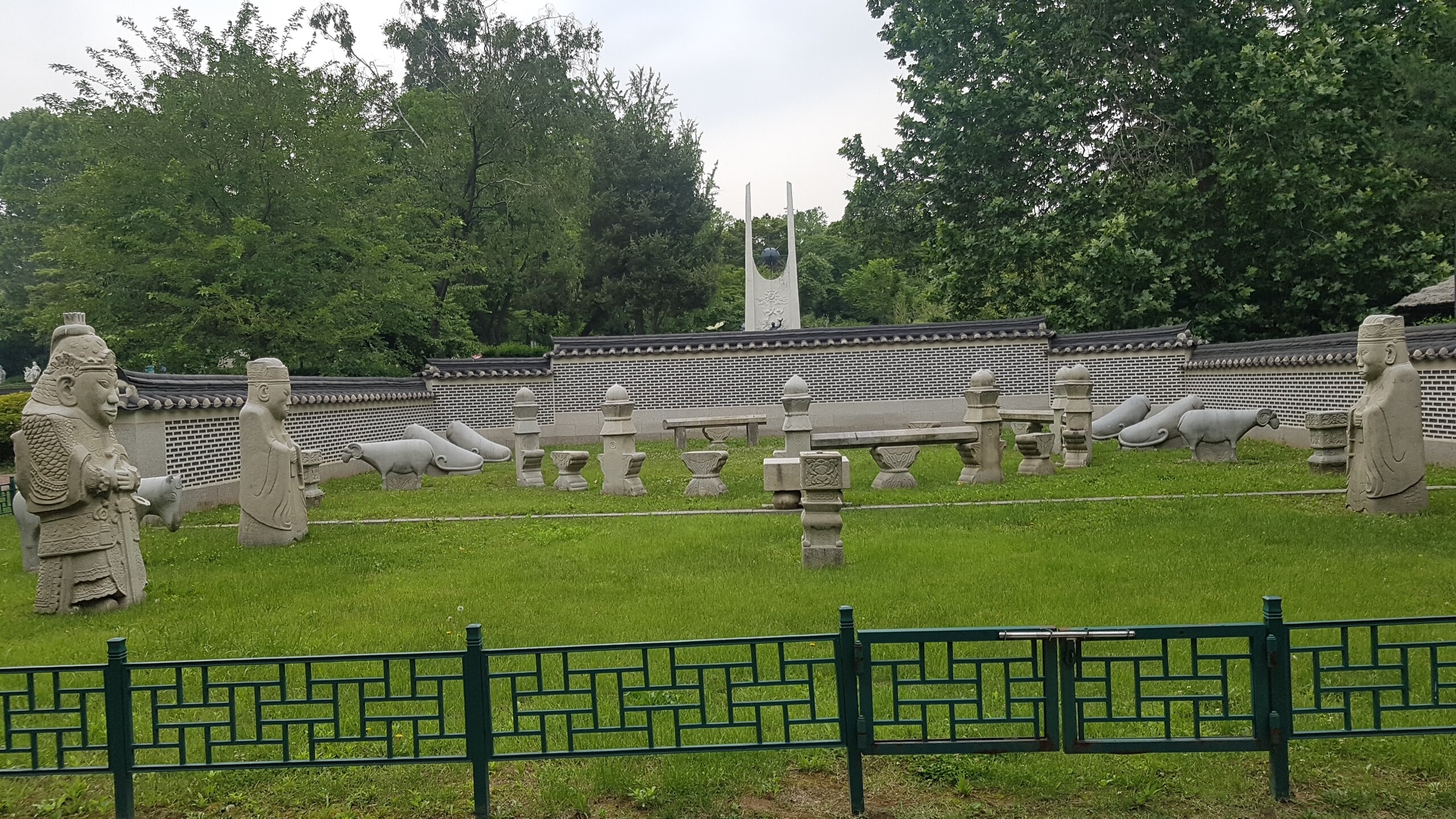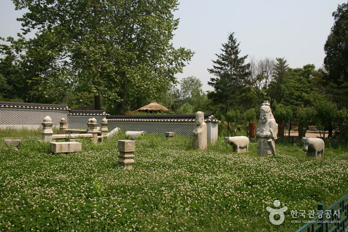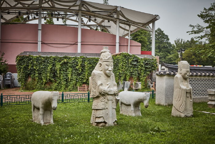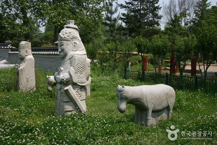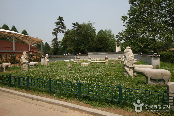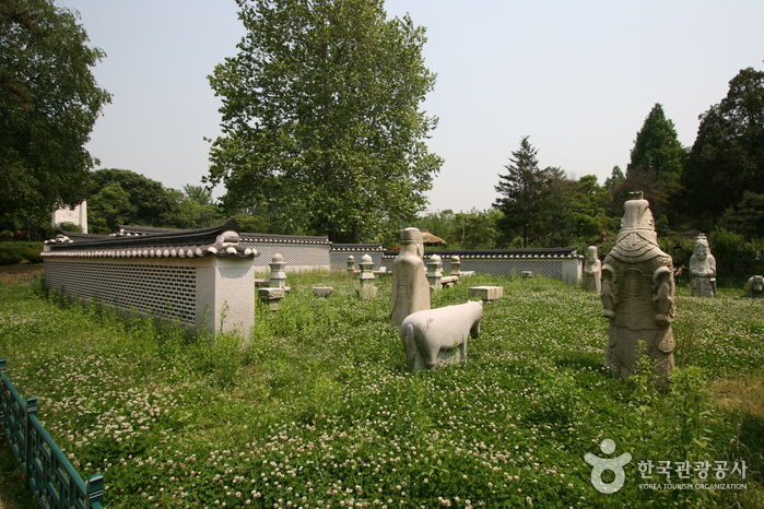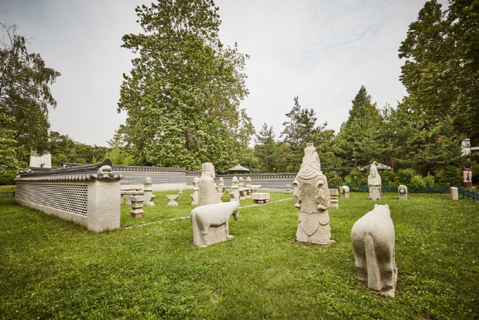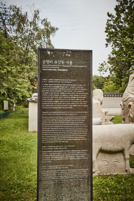 조선 제27대 왕이자 마지막 왕인 순종의 황후 순명효황후의 능이었던 옛 ‘유강원’ 터에 남아 있던 왕릉 석조각들이다. 순명효황후는 민태호의 딸로 세자빈에 책봉되었으나 순종이 임금이 되기 전 1904년에 사망하여 유강원에 묘소를 마련하였다. 그 후 순종이 세상을 떠난 1926년에 지금의 유릉에 옮겨와 함께 모셔졌으며 순종의 계비였던 순정효황후가 사망하자 이 또한 함께 모셔졌다. 순명효황후의 능을 마련하였던 유강원 터에는 능 주위에 세웠던 20여 기의 석조물이 남아있다. 석등을 비롯하여 문인석과 말, 양, 호랑이 등 동물을 조각한 것 등 매우 뛰어난 조각 솜씨를 보여 줄 뿐만 아니라 조선말 왕실의 석조각으로 그 역사적 가치가 매우 중요하다.