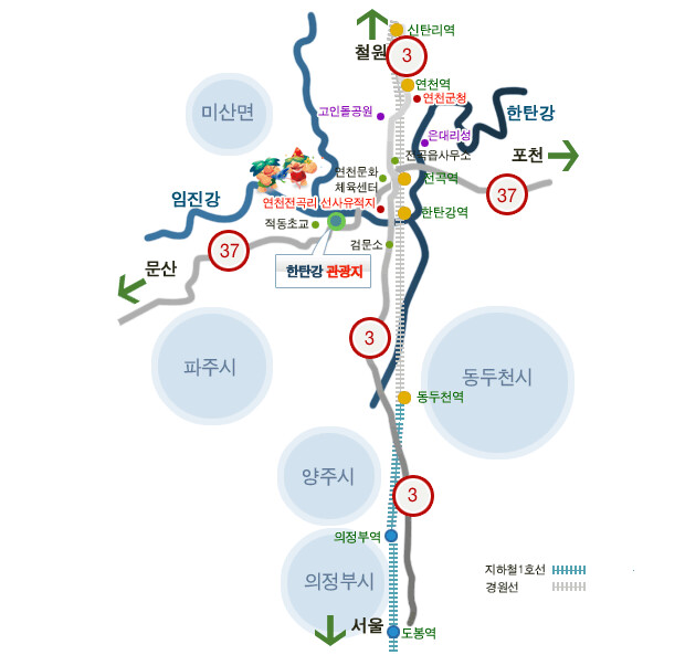 카라반, 캐릭터카라반, 캐빈하우스, 자동차야영장(오토캠핑장)과 매점, 세척실, 샤워장, 분리수거장, 어린이 놀이시설, 자전거대여소 등의 시설을 갖추고 있다. 같은 권역인 한탄강관광지 내 산책로와 체육시설, 캐릭터공원, 물놀이장, 오리배 이용이 가능하고, 전곡리선사유적 및 전곡선사박물관까지 도보로 이동할 수 있어 알찬 하루를 보낼 수 있다. 예약은 인터넷을 통해 가능하며, 연천군시설관리공단 홈페이지를 통해 링크연결 가능하다. 매월 1일 오전 10시에 다음 달 예약 창이 오픈되며, 1일이 주말이거나 공휴일인 경우 다음 평일 오전 10시에 오픈된다. 은현IC에서 차량으로 약 12분, 경원선 한탄강역에서 도보(84m) 약 2분 소요된다. 인근에 포천허브아일랜드, 포천신북리조트스프링폴온천, 감악산 출렁다리, 연천 고랑포구 역사공원, 연천호로고루, 임진강황포돛배 등이 있다.