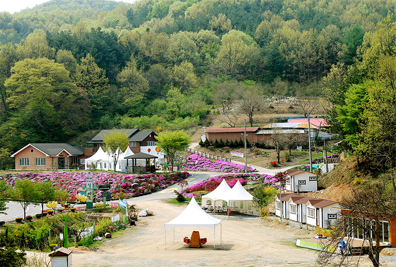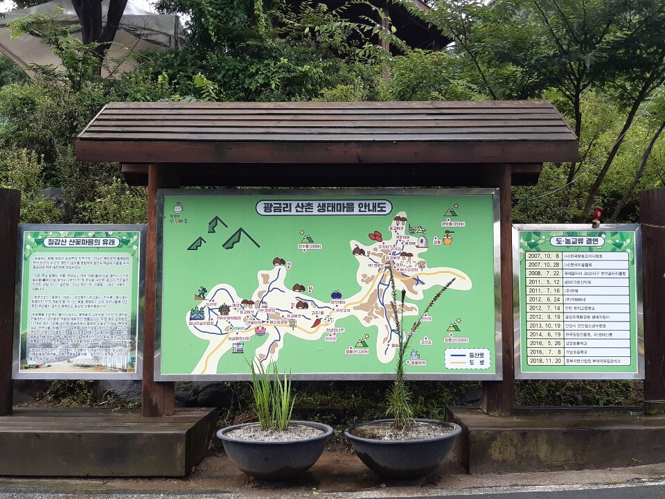 산과 들에 철따라 피고 지는 꽃향기가 가득한 광금리에는 흰눈 흩날리듯 아름다운 벚꽃길부터 집집마다 소박하게 가꾸어진 꽃밭의 정겨움까지 가득하다. 산꽃마을은 4월이면 꽃대궐을 이룬다. 도로를 막아서며 흩날리는 벚꽃이 황홀경을 연출한다. 가히 환상의 꽃길이고 황홀한 하모니다. 잠깐 이러고 말겠지 했는데 한참을 더 이어지며 벚꽃 터널을 만든다. 한국의 아름다운 길 100선에 꼽힐 만한 풍광이다. 마을 삼거리 주변으로 벚꽃과 아름다움을 견주는 개나리, 수선화, 복수초, 상사화, 코스모스 등이 계절을 바꿔가며 지천으로 피고 진다. 30여 가구에 주민이 100명도 채 되지 않는 마을이지만 규모로 가늠할 수 없는 화사함이다.