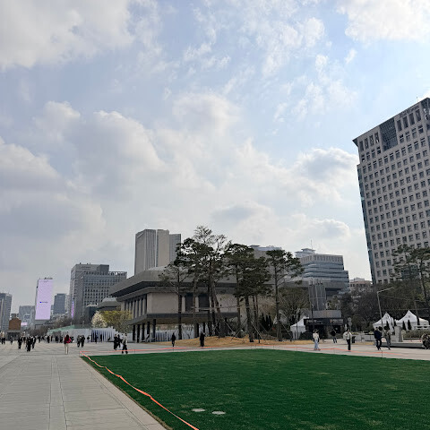 서울의 중심부에 위치한 이곳은 시청, 궁궐, 대통령 관저, 고층 건물들로 둘러싸여 있습니다. 주요 명소들이 도보 거리에 있으며, 주변에 호텔도 몇 군데 있습니다. 서울의 중심부에 위치해 있어 다양한 교통수단을 이용하기 편리합니다. 이곳에서 하루를 할애하여 주변 명소들을 둘러보는 것도 좋습니다. 외국인 관광객들을 많이 볼 수 있을 것이며, 미국 대사관도 이곳에 있다는 점을 참고하세요.