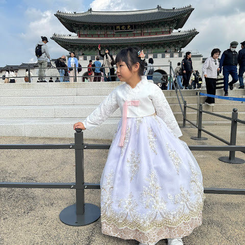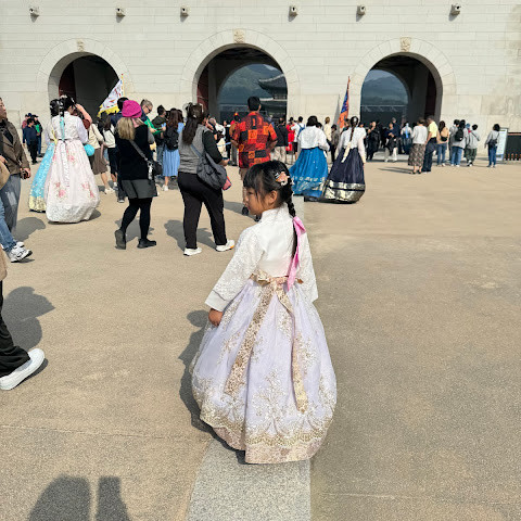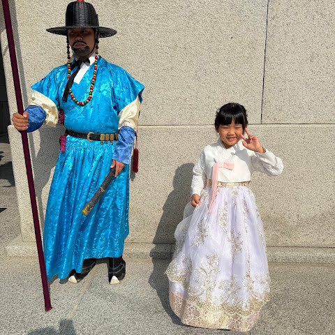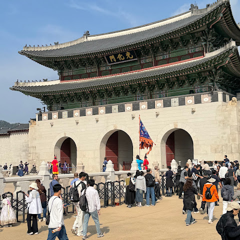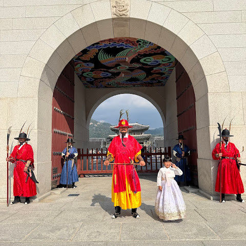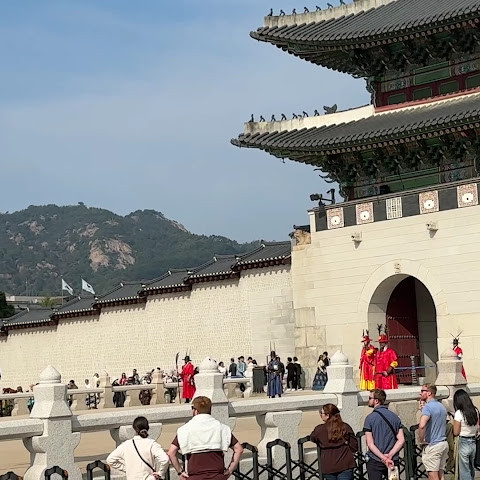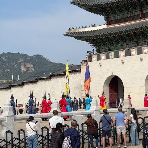 옷을 갈아입고 10시 45분에 광화문에서 열리는 국왕 반납식을 보러 달려갔어요! 정말 특별했고, 여러 언어로 해설도 들을 수 있었어요!