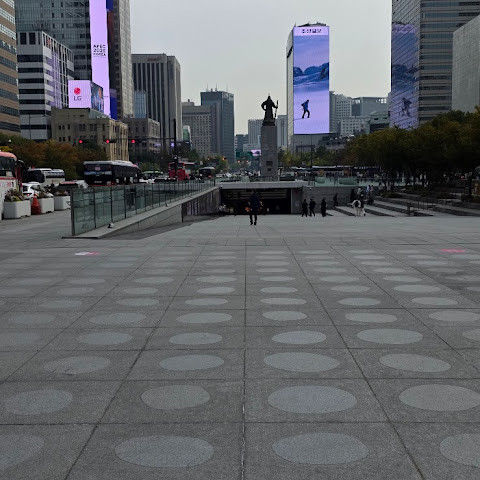 광장에는 두 개의 상징적인 동상이 있습니다. 바로 한국 해군 영웅 이순신 장군과 한글을 창제한 세종대왕입니다. 두 동상 모두 한국의 주요 인물들의 이야기와 업적을 보여주는 무료 지하 전시관과 함께 운영됩니다.