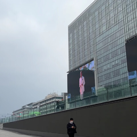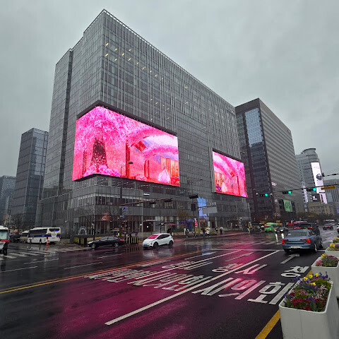 옆쪽을 보니 건물에서 영상을 틀어주셨는데요