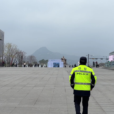 광화문은 정말 깨끗했어요. 우리가 갔을 때는 경찰이 너무 많아서 친구들이 항의하고 있었어요.