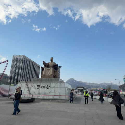 경복궁 바로 앞에 위치해 있으며, 다른 곳들과 연결되어 있어 산책하기 좋습니다. 하지만 동상과 역사적인 볼거리 외에는 특별히 할 만한 것이 많지는 않습니다.