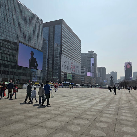 이곳은 연중 다양한 행사가 열리는 공공 광장입니다. 서울광장에서 이 광장까지 걸어가서 길을 건너 궁궐 입구와 민속박물관으로 갈 수 있습니다. 교통수단 없이도 이 지역의 모든 관광 명소를 즐길 수 있는 아름다운 도보 코스입니다. 강력 추천합니다.