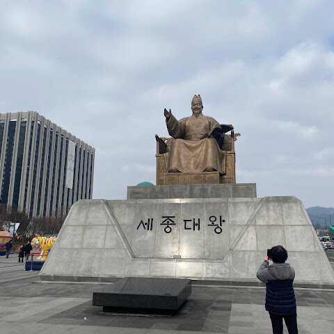 경복궁 앞 넓은 광장에는 세종대왕 동상이 있습니다.