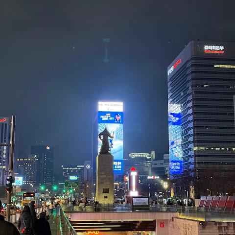 서울 중심부에 위치한 거대하고 탁 트인 광장입니다. 저희가 갔던 날은 전시 때문에 사람들로 북적이고 활기가 넘쳤습니다. 굳이 찾아갈 만한 곳은 아니겠지만, 서울 중심부에 있고 서울의 다른 명소들을 구경하는 길목에 있어서 결국 찾게 될 가능성이 높습니다.