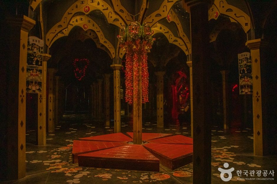 제주 이상한 나라의 앨리스는 5가지 즐거운 테마로 이색 실내 체험을 할 수 있는 테마파크다.  다면체 형상 반사 원리를 이용한 신비롭고 입체적인 거울 미로 탈출, 스릴 넘치는 고대 이집트 피라미드 내부 체험, 빛의 굴절 반사로 시각적 착시를 느낄 수 있는 매직 착시 포토존 촬영 체험, 가족과 연인을 위한 사랑의 자물쇠 보석관 체험, 토네이도 폭풍 속을 온몸으로 전율을 느낄 수 있는 이상한 나라의 앨리스 엔딩 테마 환상의 블랙홀 체험 등이 있다. 산방산과 용머리해안에서 차로 약 13분 거리에 위치해 있으며 친구, 가족과 함께 방문하기 좋다.