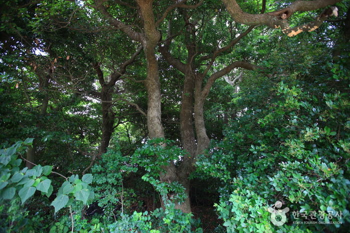 소안면 소재지에서 약 6km 떨어진 곳에 있는 상록수림으로 난대지방을 향토로 하는 후박나무를 중심으로 24종 776그루의 수목이 숲을 형성하고 있다. 이 숲의 길이는 400m에 이르며 기능적으로는 해풍으로부터 안쪽을 보호해 주는 방풍림으로서의 역할을 하고 있고 미라마을의 경계지 역할을 하고 있다.
