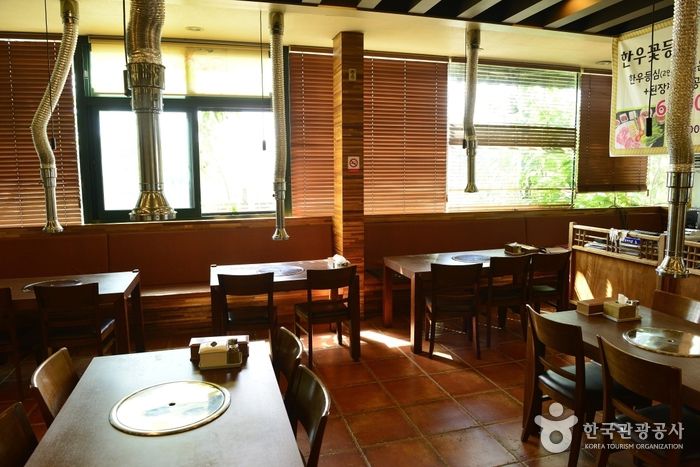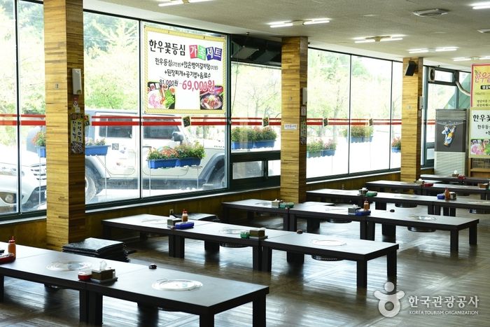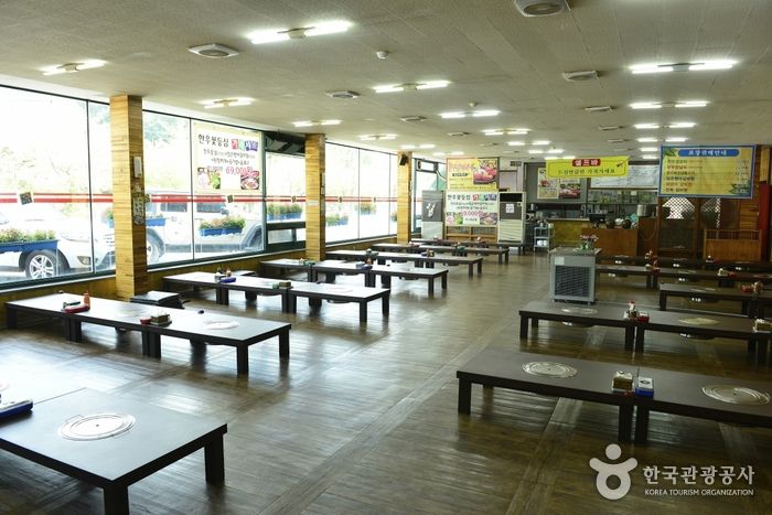 아산온천 내에 위치하며 앉은뱅이 갈비탕으로 유명한 곳이다. 씨름선수도 한 그릇을 먹으면 일어서지 못할 정도로 푸짐한 양과 맛이 뛰어나 앉은뱅이 갈비탕이라 이름 지었다. 표고, 느타리, 팽이 등 다양한 버섯류와 야채, 그리고 비법의 육수로 조화된 전골식 식사는 온천 후 출출해진 허기를 만족시킨다.
