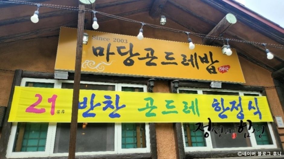 곤드레밥과 닥종이 공예로 유명한 경기으뜸음식점이다. 본관인 마당에서는 매일 바뀌는 21가지의 정성스러운 반찬과 함께 곤드레밥정식과 대나무통밥을 맛볼 수 있다. 곤드레밥의 곤드레 나물은 직영농장에서 직접 재배한 곤드레 나물만을 사용하고 있으며, 대나무통밥은 품질 좋은 담양 대나무 통속에 찹쌀, 은행 등 여러 가지 잡곡을 넣고 지은 영양밥으로, 한번 사용한 대나무통은 재사용하지 않기 때문에 은은한 대나무향을 고스란히 느낄 수 있다고 한다. 별관인 작은 마당은 식사를 마친 고객을 위한 공간으로 직접 제작한 소품들과 젊은 작가들의 생활 도자기를 만날 수 있다. 또한 커피와 수정과, 레몬티, 국화차, 한방차, 유자차, 헛개나무 열매차 등 계절에 맞는 여러 가지 차를 무료로 맛볼 수 있다.