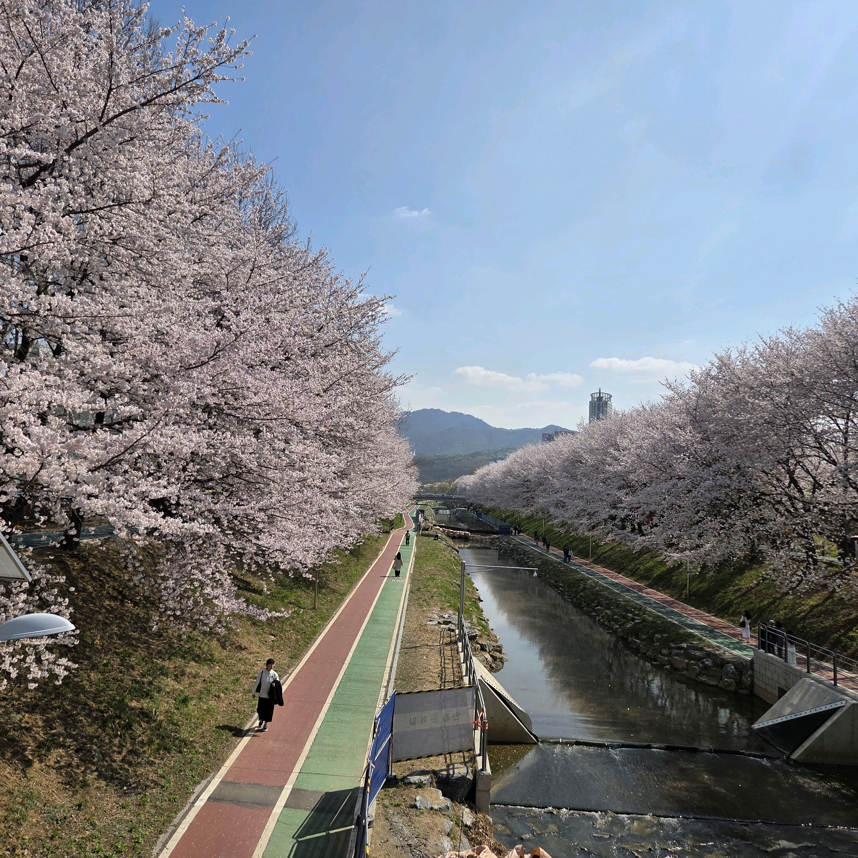 벚꽃시즌에 해질녘쯤 산책했는데 풍경이 너무 아름답고 날씨가 맑고 시원해서 행복했습니다. 산책코스 잘 되어있어서 운동화신고 오래 걷기 좋습니다.