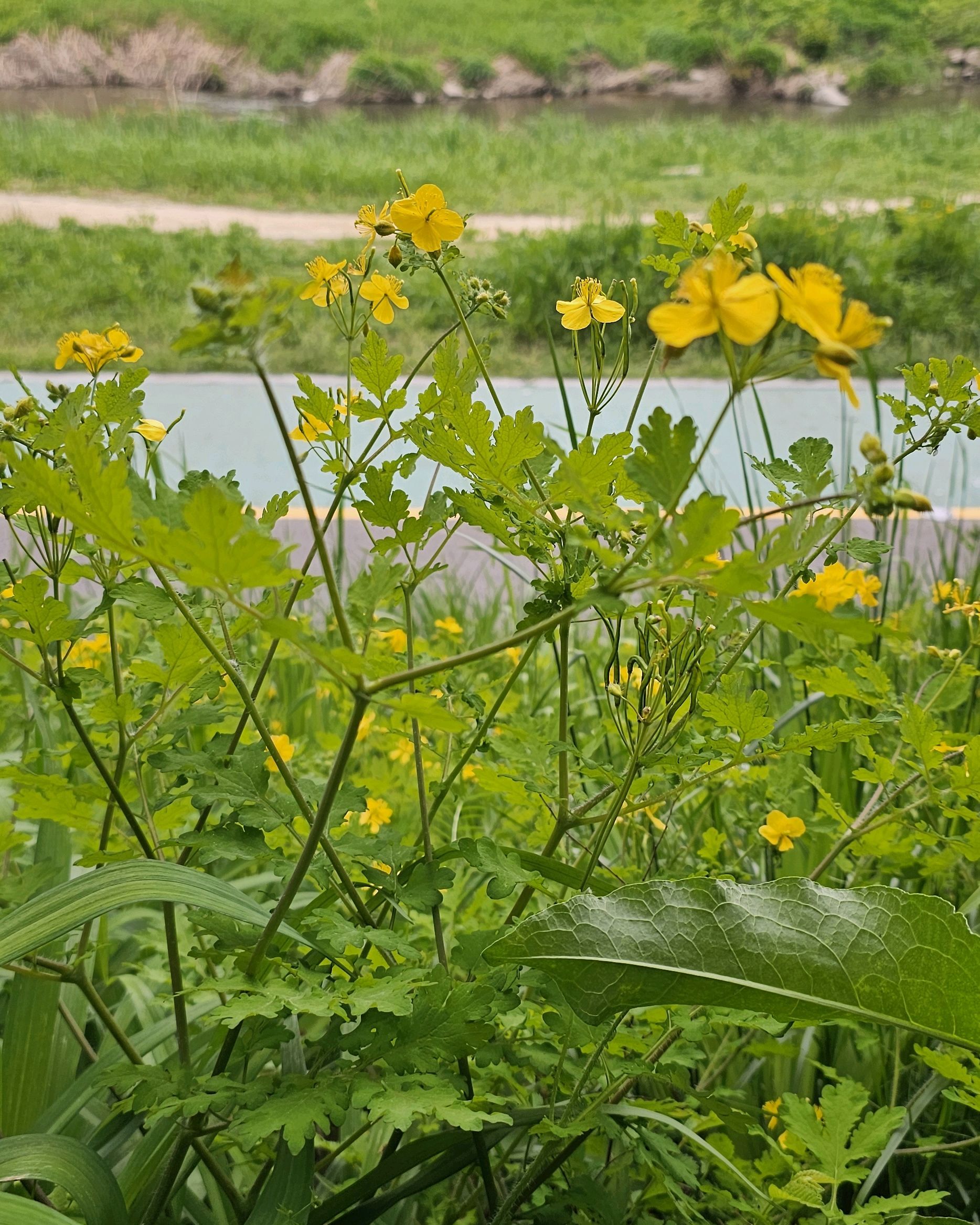 시냇물 졸졸흐르는 양재천가에는 노오란 애기똥풀, 산괴불주머니꽃,병아리꽃나무,매화꽃,버드나무.....