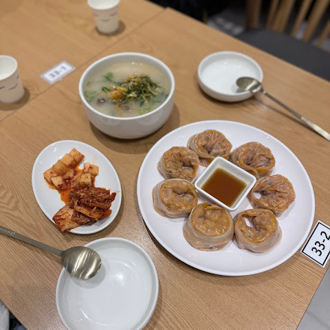 만두는 맛있고, 면은 평범한 편이에요 (하지만 더 맛있는 곳도 있어요). 김치는 맛있고, 더 달라고 하면 더 달라고 할 수도 있어요. 40분이나 줄을 서야 했지만 모든 게 아주 정돈되어 있었어요. 아래층 복도에서 만두를 만들고 있었는데, 구경하는 재미가 쏠쏠했어요.