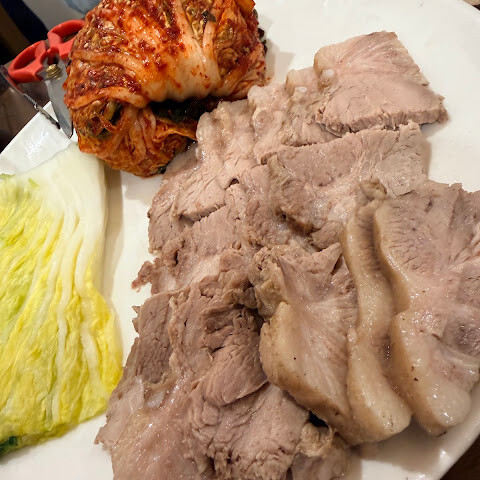 한 참 기다려서 들어간 곳! 외국 관광객도 많고 사람들이 많다. 칼국수와 만둣국 국물도 맛있고 수육, 김치, 백김치 짜지 않아서 맛있었다! 키오스크 예약 없이 현장서 한 참 기다리는 것 빼고는 좋았다! 부모님과 아이들이 조금 고생~