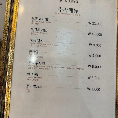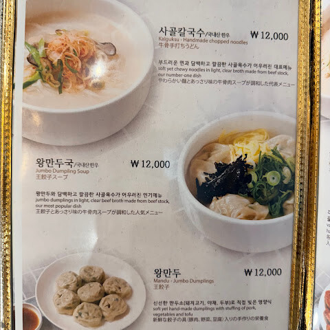 식당이 여러 개 있다고 하더군요. 민속 박물관 옆에 있는 식당에 가 봤습니다. 미슐랭 가이드에 등재된 명패가 많아서 실망하지 않았습니다. 만두는 훌륭했고, 국수도 아주 맛있었습니다. 한국어를 못 하는데도 환영해 주셔서 정말 좋았습니다. 저희는 뒤쪽 테이블에 바닥에 앉았습니다. 정말 멋진 경험이었습니다.