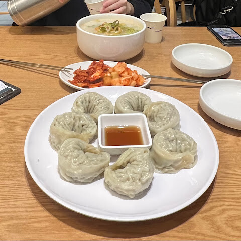 만두는 맛있고, 면은 평범한 편이에요 (하지만 더 맛있는 곳도 있어요). 김치는 맛있고, 더 달라고 하면 더 달라고 할 수도 있어요. 40분이나 줄을 서야 했지만 모든 게 아주 정돈되어 있었어요. 아래층 복도에서 만두를 만들고 있었는데, 구경하는 재미가 쏠쏠했어요.