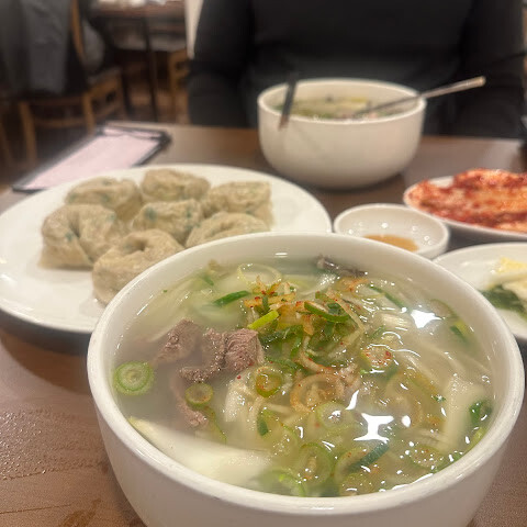 국물이 찐하고 고소한 사골국물이예요. 잡내안나서 좋았고 만두도 맛있습니다. 백김치가 담백하니 자꾸 땡기는 맛이었어요. 다만 사람이 항상 많은 곳이라 그런가 좀 번잡스럽고 2층 매장에서 먹었는데 테이블이 잘 안닦여있었어요. 방문하실분들은 주말 말고 평일 저녁에 방문해보세요! 웨이팅 10분정도 후에 바로 입장했습니다