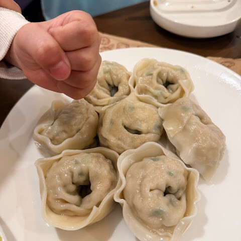 줄을 선 지 20분도 채 되지 않아 만두와 국수를 만들고 있는 테이블 옆에 앉았습니다. 만두국과 가장 인기 있는 국수를 주문했는데 금방 나왔습니다. 입맛에 맞지는 않았지만, 음식은 아주 가정식 같았고 우리에게 꼭 필요했던 건강하고 든든한 식사였습니다. 왜 그렇게 많은 사람들이 줄을 서 있는지 금방 알 수 있었습니다. 마음이 편안해지는 그런 음식을 제공하는 곳이죠. 직원들도 모두 친절해서 우리 아이를 아주 사랑스럽게 돌봐주고 아껴줍니다.