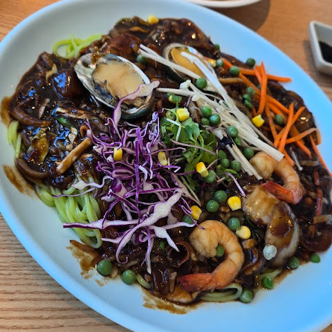 정말 맛있어요! 된장국수 정말 추천해요! 달콤한 소스 맛이에요 👌🏻 너무 좋아요 ❤️‍🔥 해물국수에도 재료가 듬뿍 들어가 있어요! 스포일러 금지~ 해룡궁 다녀오신 후에 한식 드셔보세요!
