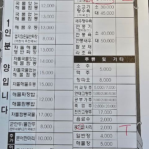스카이라인 루지 바로 맞은편, 해동용궁사 오르막 교차로에 있는 석판 바로 옆에 있어요. 관광객이 너무 많아서 문에 들어서자마자 중국어를 할 줄 아는 아주머니가 맞아주셨어요! 그래서 금방 주문을 마쳤어요. 대표 메뉴인 해물면은 살짝 매콤하면서도 맛있어요. 보통 면은 맵지 않은데 (매운 음식 잘 못 먹는 아이들은 싫어하거든요), 이게 바로 우리 모두가 좋아하는 면의 맛이에요!! 탕수육이 아주 탱글탱글하고, 소스도 뿌려져 있어요. 전에 대만에서 먹었던 해물면은 고기가 적고 면이 많았는데, 이 해물면은 정말 맛있어요!