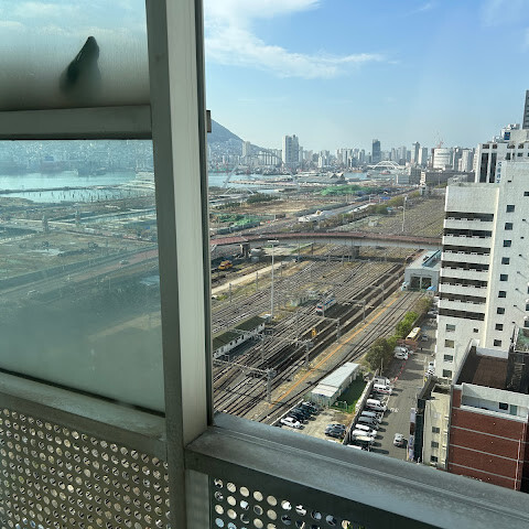 부산역 바로 옆이라 KTX를 타고 서울을 오가기 정말 편리해요. 근처에 세븐일레븐, 스타벅스, 24시간 식당도 있고요.