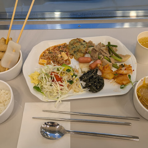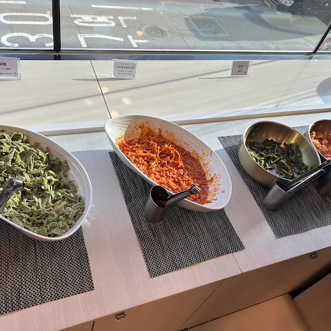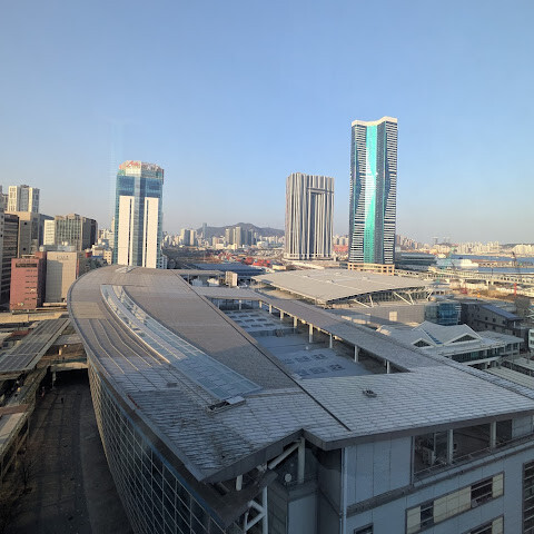 아침 식사는 정말 맛있었어요! 어묵과 죽도 있었고, 반찬은 며칠 만에 먹어본 최고의 맛이었어요 (약 15가지 반찬이 나왔는데, 한 가지 날것만 빼고 모두 익힌 거였어요). 밥은 기계로 지어서 나왔어요. 특히 단호박과 인삼 닭고기볶음을 추천하는데, 사실 모든 반찬이 다 맛있었어요. 호텔은 KTX 2번 출구 바로 맞은편에 있어서 위치가 정말 편리해요. 저는 바다 전망 더블룸에 묵었는데, 매일 항구를 볼 수 있어서 정말 좋았어요. 객실 구조는 일본의 도요코인 호텔처럼 콘센트도 많고 인터넷도 빨라서 좋았어요. 주요 편의시설은 역 근처에 있고 (푸드코트는 밤 10시 이후에는 닫아요), 근처에 카페도 있고, 호텔 내에 셀프 세탁실도 있어요. 단점은 투숙객이 많을 때는 엘리베이터 대기 시간이 길어질 수 있다는 거예요 (조식 시간은 6시 30분부터 9시까지). 그리고 정말 멋진 바다 전망을 원한다면 해운대 쪽이 더 나을 수도 있어요. 음식은 서면 쪽이 더 나은 선택일 거예요.