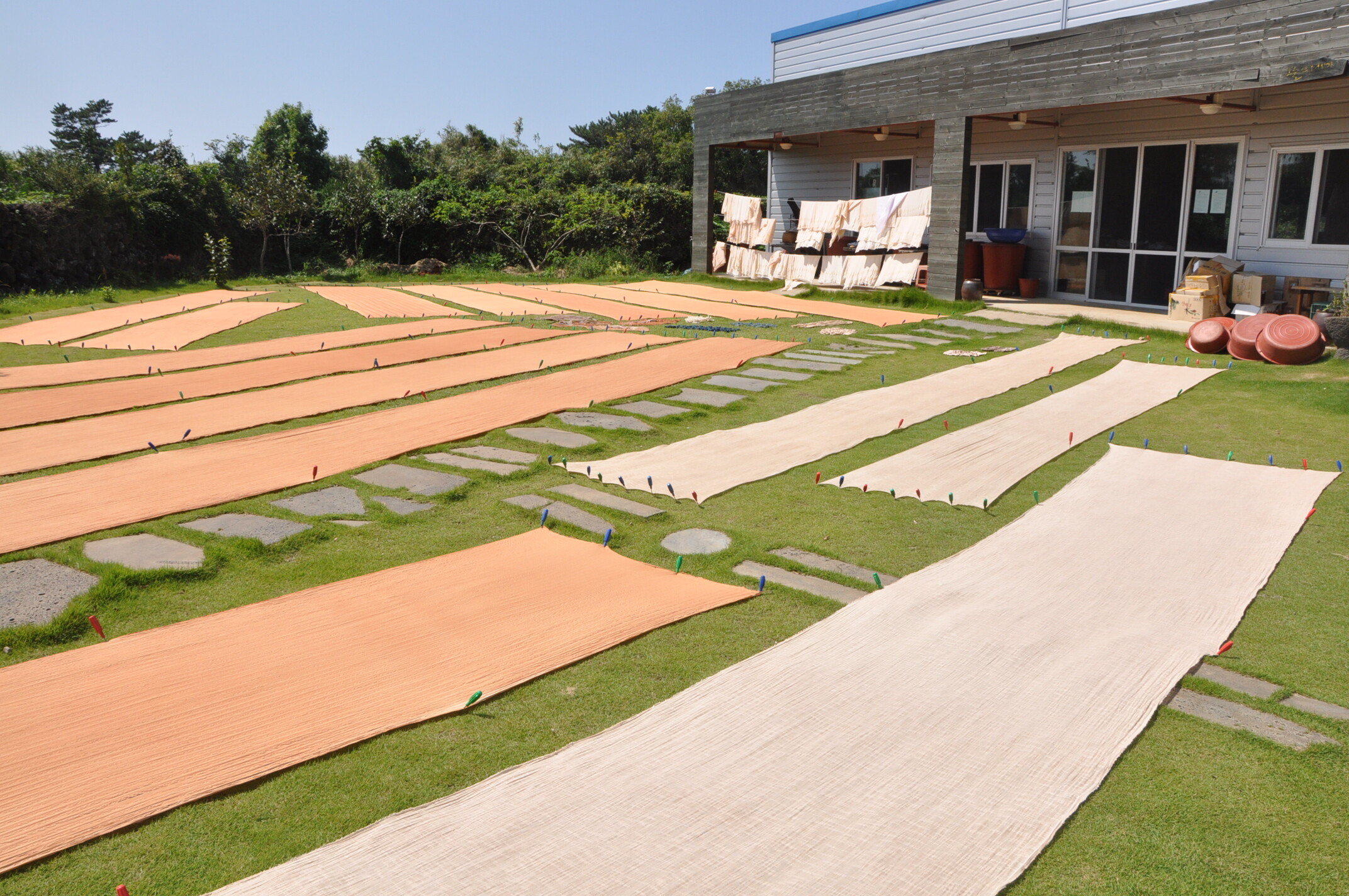 제주 한경면에 위치한 물드리네는 천연염색 체험장이다. 2010년 신라대학교 전통염색연구소 제주교육장으로 인증받은 우수한 염색교육장으로 알려져 있다. 500여 평의 규모에 전시실, 염색체험장이 있으며 근처에 염료식물을 재배하고 있다. 물드리네는 체험학습자의 연령별, 인지 정도에 따른 염색체험과 염색에 관심이 있는 사람들을 위한 천연염색교실을 운영하고 있다. 염색 재료는 제주풋감, 억새, 귤, 찻잎, 동배잎, 쪽, 홍화, 자근, 치자 등 제주지역의 나무와 풀 그리고 각종 한약재를 사용한다.