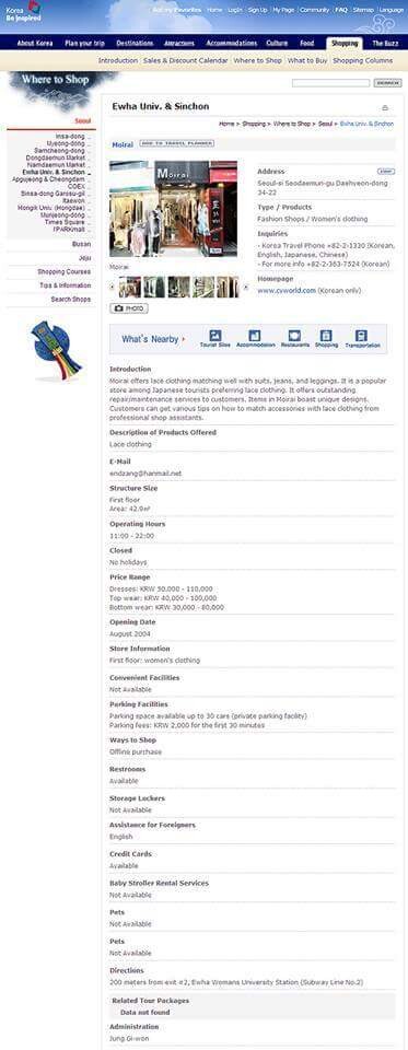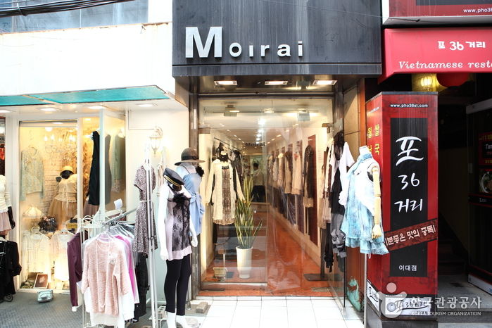 모이라이 (moirai)는 정장 안에 받쳐 입거나 시크니 진 또는 레깅스와 매치해서 입는 레이스 의상이 대표 상품이다. 레이스를 좋아하는 일본인 관광객에 인기가 많으며, 구매 상품에 대하여 무기한 A/S를 한다는 것이 특징이다. 직접 디자인하여 독특한 제품을 구매 가능하며 의상과 어울리는 액세서리 또한 코디 서비스를 받을 수 있다.