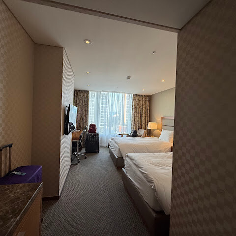 공덕옆 바로 앞에 위치해있어서 접근성이 너무 좋고 일찍 11시반쯤 도착해서 캐리어만 맡기고 움직이려고 했는데 얼리체크인 가능하다해서 너무 감사했는데 싱글트윈에서 더블룸트윈으로 룸업그레이드까지!!! >.<