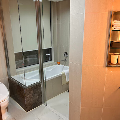 솔직히 이 호텔이 한국에서 3성급으로 평가받는 게 놀랍습니다. 다른 나라였다면 최소 4성급이나 4.5성급은 받았을 거예요. 호텔 내에는 시설이 정말 다양합니다. 잘 갖춰진 헬스장, 수영장, 세탁 시설(셀프 세탁과 풀 서비스 세탁 모두 가능), 비즈니스 센터, 편의점, 레스토랑(지하 쇼핑몰에 맛집이 많아서 굳이 필요하진 않지만), 약국(호텔과는 별개)까지 있어요. 아쉬운 점이 있다면 컨시어지 서비스가 없다는 것뿐입니다. 객실 크기도 적당하고(화장실은 넓고 샤워부스와 욕조가 모두 갖춰져 있어요) 편안합니다. 각 층마다 온수/냉수 정수기와 제빙기가 있어서(객실에 전기 주전자가 있는 것보다 훨씬 좋았어요) 편리합니다. 지하 쇼핑몰, 지하철역, AREX역 바로 위에 위치해 있어 교통도 편리합니다. 직원들도 매우 전문적이었습니다.