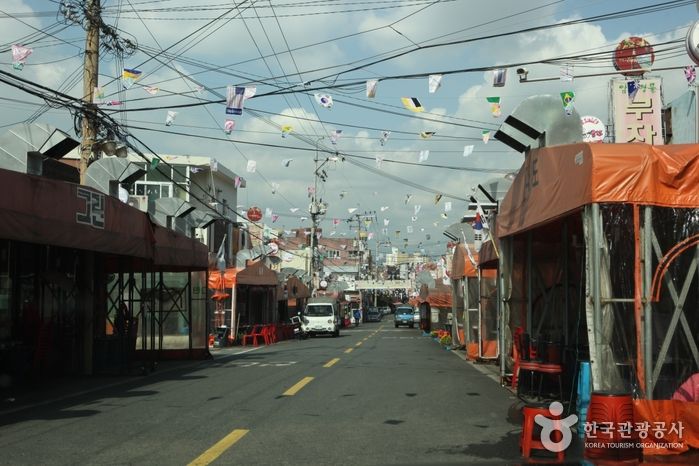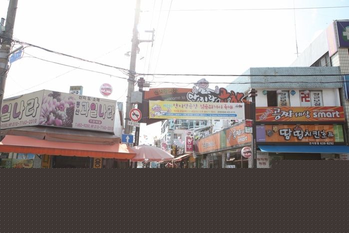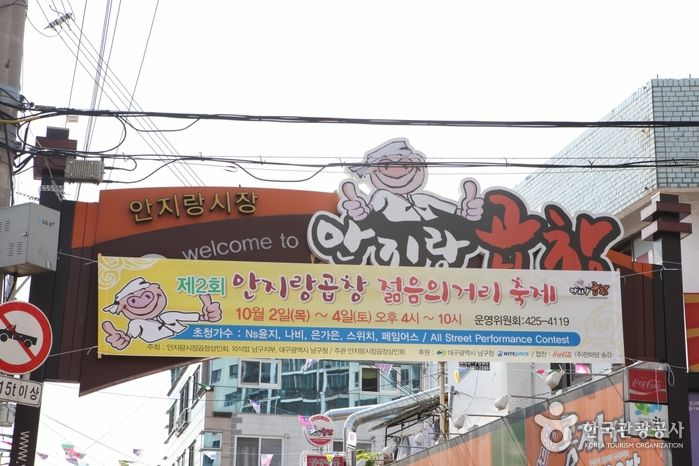 안지랑 오거리에서 앞산 안지랑골로 통하는 길 중간에 형성된 안지랑시장은 화려한 명성을 뒤로하고 최근 양념 곱창집이 들어차 새로운 활력이 되고 있다. 79년경 안지랑시장 쪽에 충북식당을 시작으로 ’98년 IMF 이후 생계유지 업소 늘어나기 시작 오의 안지랑 시장을 활성화시켰고, 서민들이 부담 없이 즐길 수 있는 휴식처이자 최근엔 젊은 층이 주도하는 젊음의 거리로 발전하게 되었다. 또한 07년도부터는 상가 활성화를 위하여 간판 개·보수 및 손 씻는 시설 설치 및 영업장 환경개선하여 재래시장의 활성화에 더욱 힘을 쓰고 있다.
